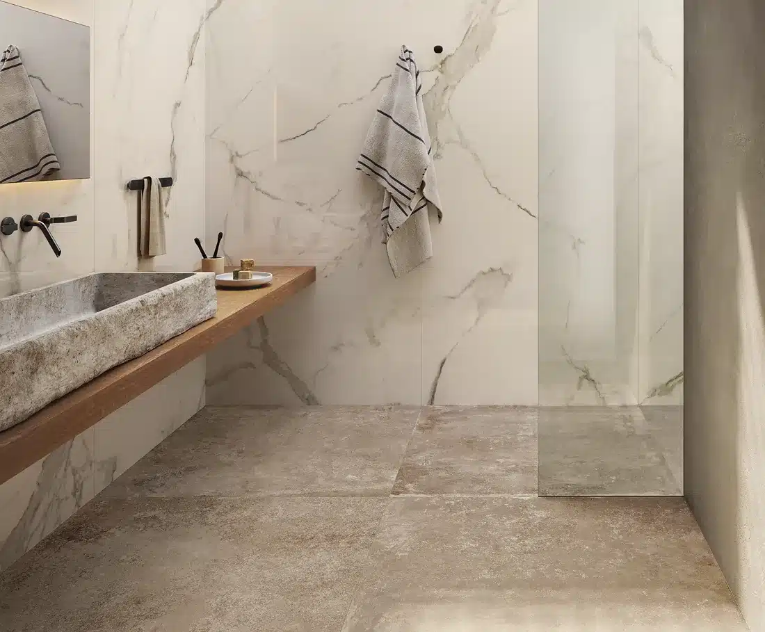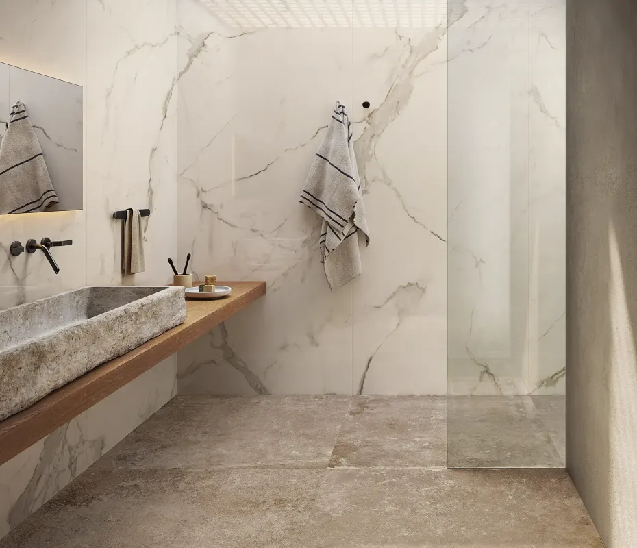 Verbinden die Vorliebe für den natürlichen Look des Holzes mit den Stärken moderner Feinsteinzeugfliesen.